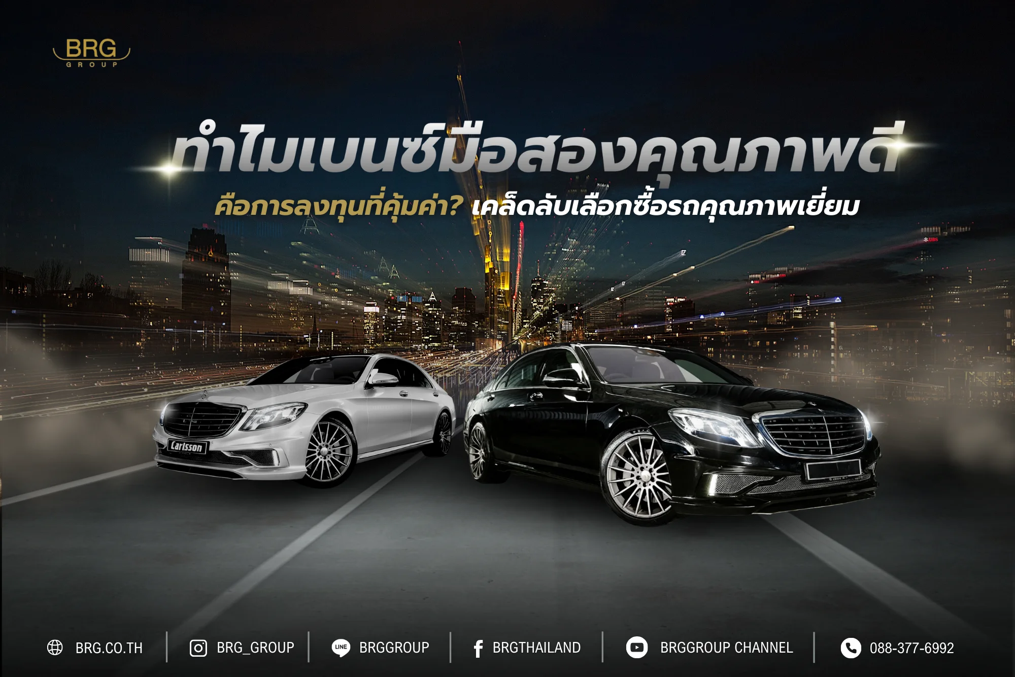 เบนซ์มือสองและรถทั่วไป จาก BRG GROUP คือคำตอบที่ใช่สำหรับผู้ที่ต้องการรถหรูคุณภาพเยี่ยมในราคาที่จับต้องได้ ด้วยราคาที่ถูกกว่ารถป้ายแดงมาก แต่ยังคงความหรูหราและสมรรถนะเหนือชั้น ความสำคัญอยู่ที่การเลือกซื้อจากศูนย์ที่เชื่อถือได้อย่าง BRG GROUP ที่มีการตรวจสอบเข้มงวดและโปร่งใส คัดสรรเฉพาะรถคุณภาพดีมาให้คุณเลือก พร้อมบริการหลังการขายที่อุ่นใจ ด้วยประสบการณ์กว่า 50 ปีในวงการรถยนต์หรู BRG GROUP พร้อมดูแลคุณในทุกขั้นตอน ตั้งแต่เลือกรถที่ใช่ ตรวจสภาพละเอียด จัดไฟแนนซ์เงื่อนไขพิเศษ ไปจนถึงบริการหลังการขายแบบครบวงจร เพราะเราเชื่อว่า “ทุกความวางใจเริ่มต้นที่นี่”